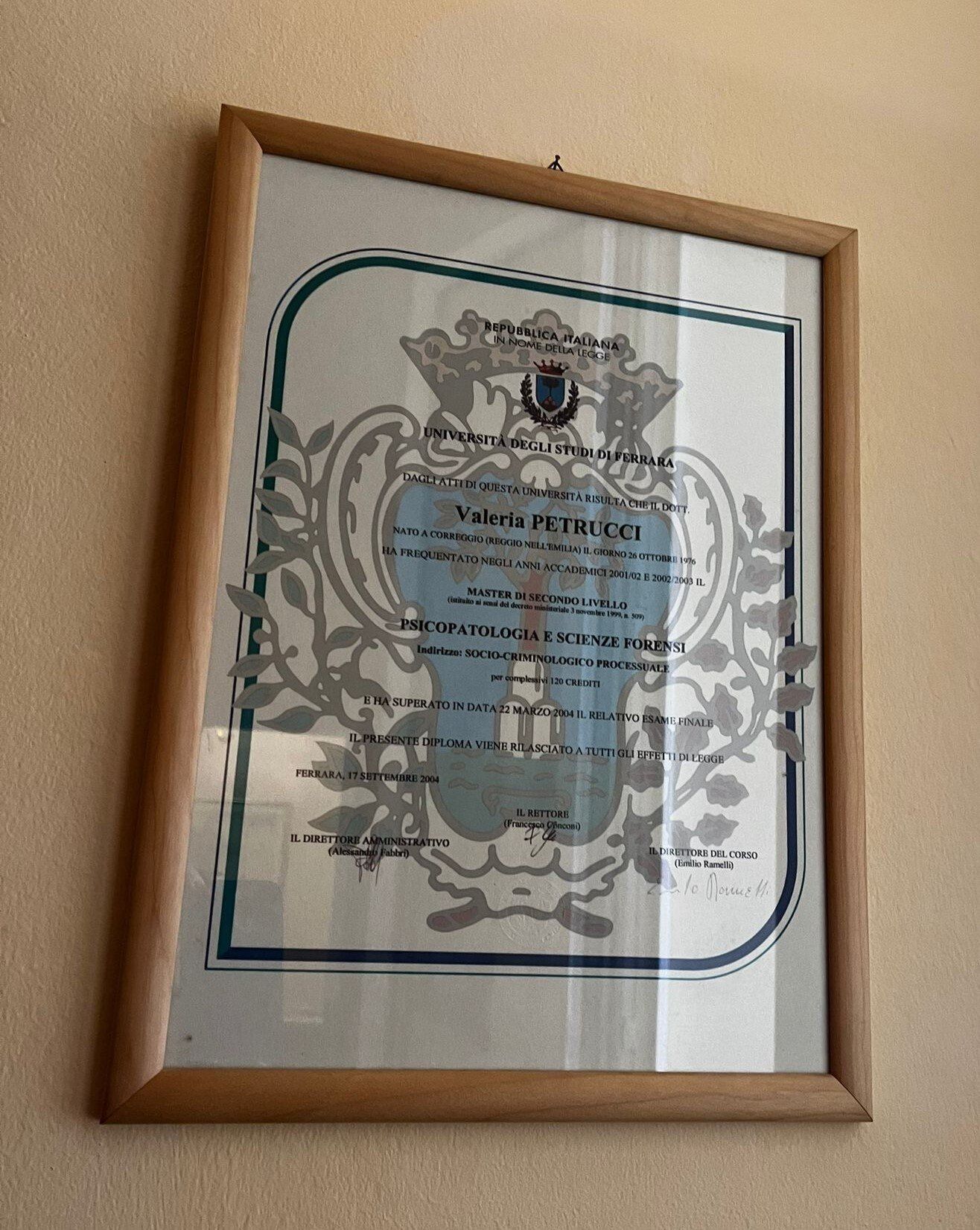 L’Avvocato Petrucci ha inoltre grandi competenze umane e criminologiche possedendo un master in Psicopatologia e Scienze Forensi, che la rendono particolarmente adatta a gestire situazioni sensibili e ad elevata conflittualità, soprattutto familiare e relativa alla violenza di genere